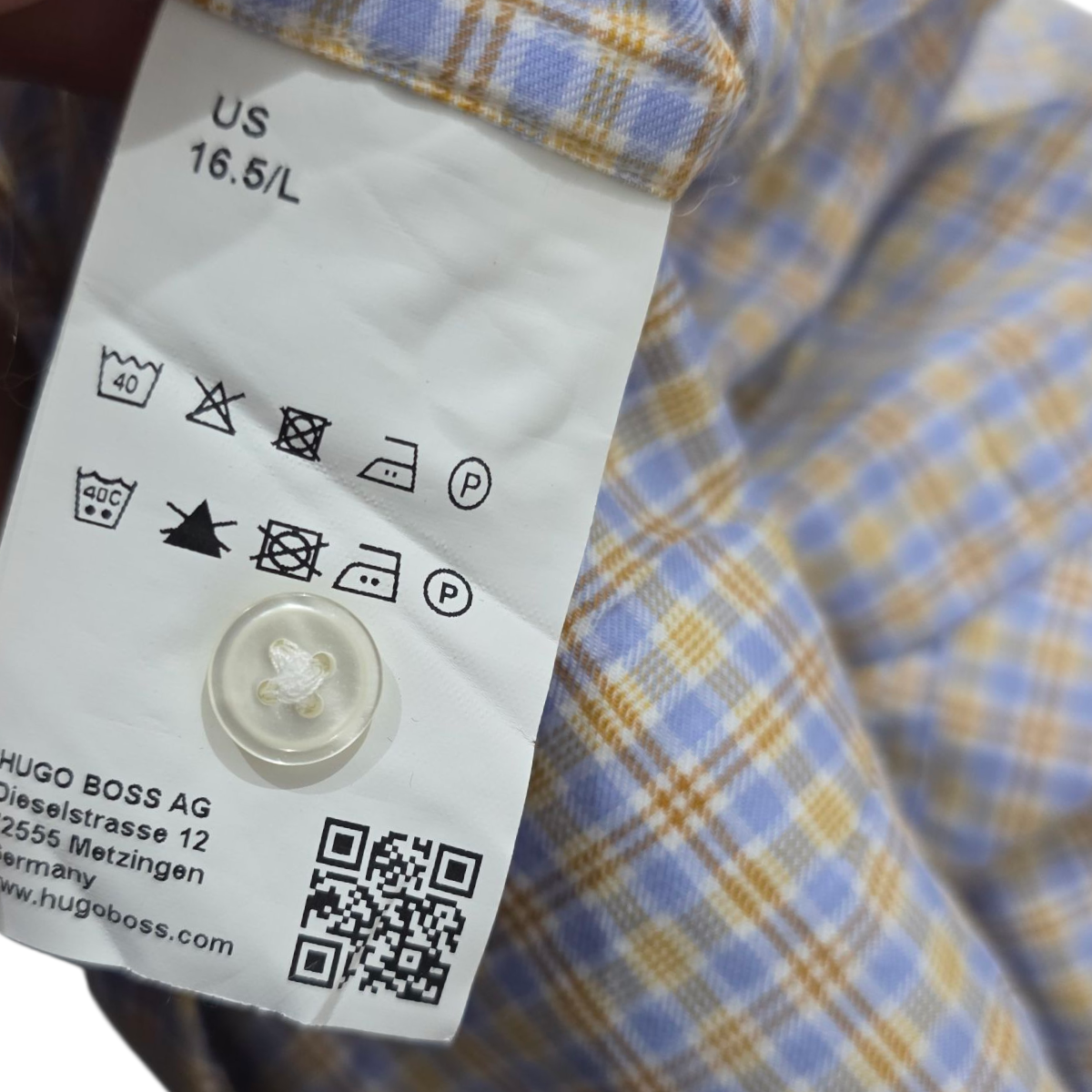 Camisa Hugo Boss Grande L Cuadro Azul Y Amarillo Sharp Fit