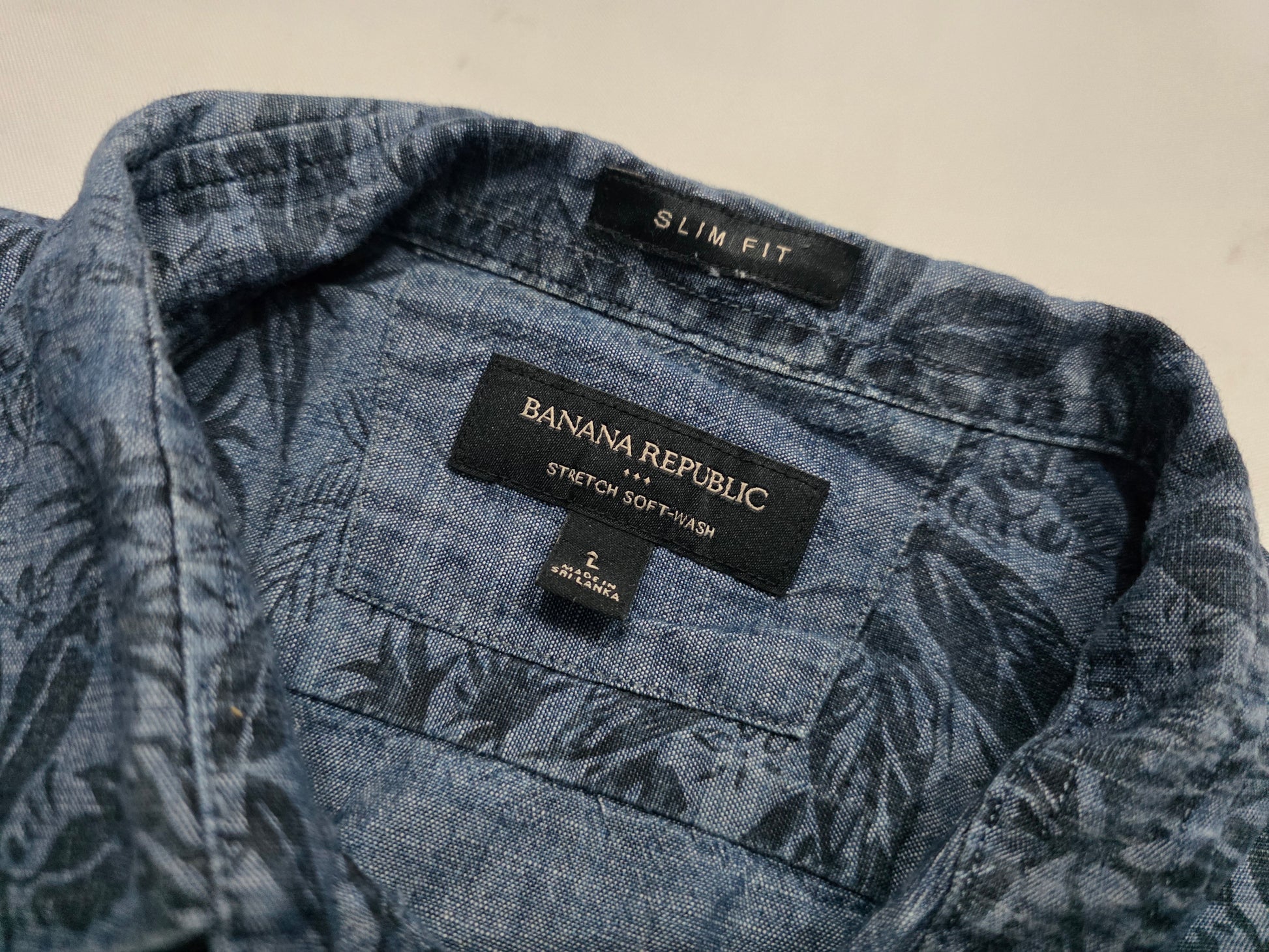 Camisa Manga Corta Banana Republic Grande L Slimfit Azul