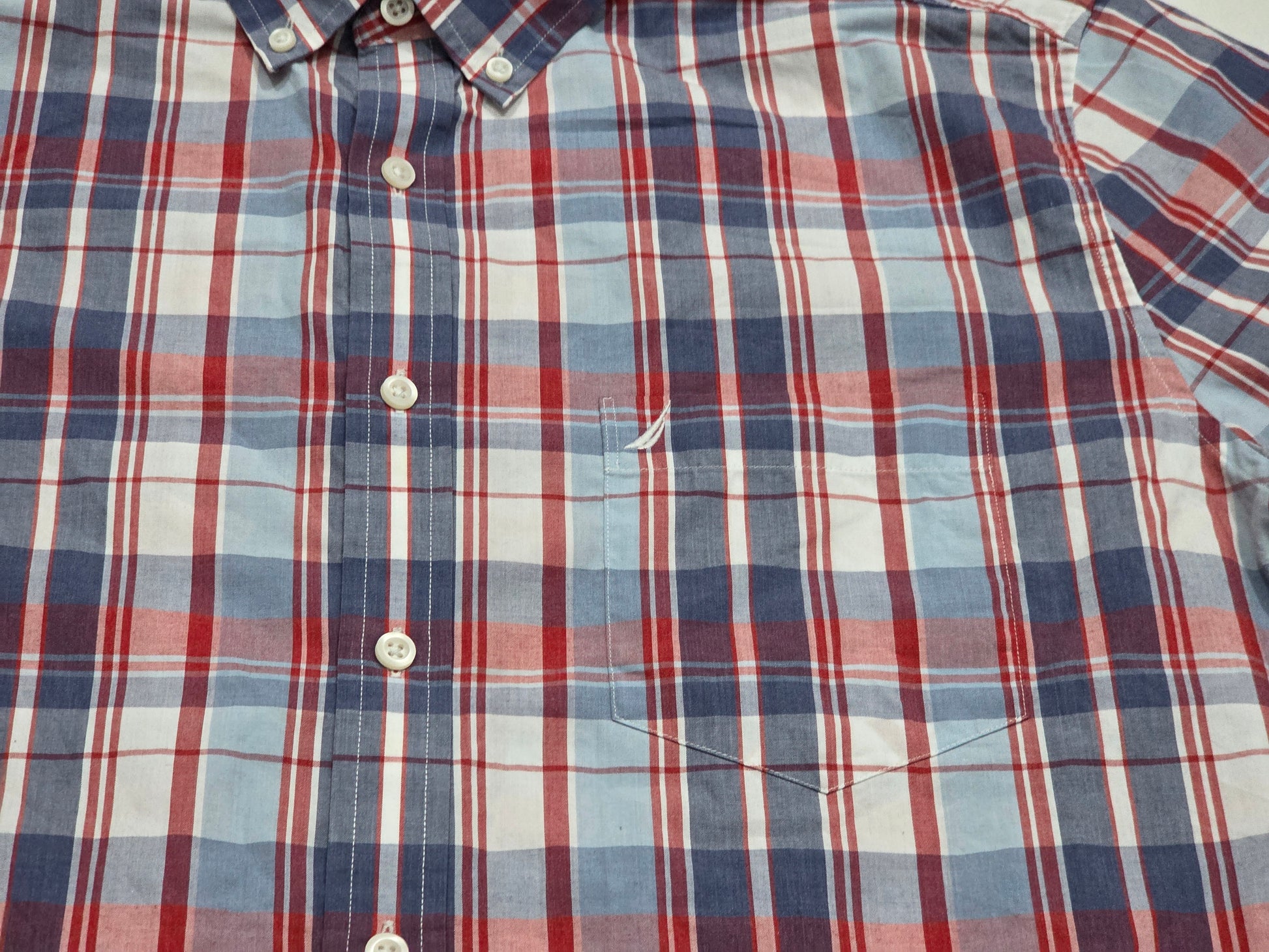 Camisa Manga Corta Nautica Xgrande Xl Cuadro Rojo Y Azul